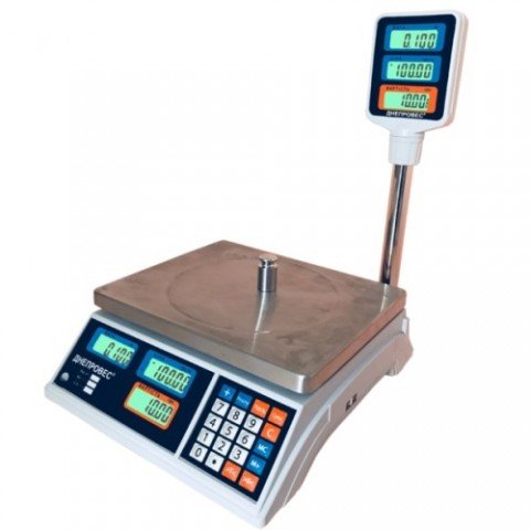 Ці ваги є повним аналогом Дніпровес ВТД-Т1-15 СВ і мають ідентичні характеристики. Головною відмінністю від базової моделі є максимальна межа зважування, що дорівнює 6 кг. та комплектація ваг стійкою, на якій розташовується рідкокристалічний дисплей покупця. Повний опис моделі знаходиться за посиланням https://posteh.com.ua/vagove-obladnannja-ua/vagi-ua/dniproves-vtd-t1-15-sv-5743-ua