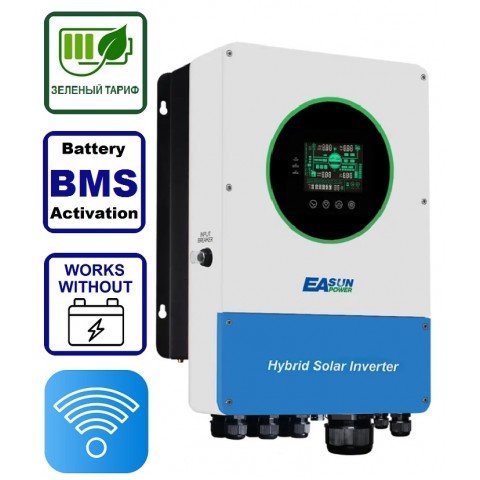 Інвертер EASUN POWER 6.0kW 48V IGrid-SX-WP-6KW (6000VA/6000W Max CH 100A, AC 60А) Wi-fi – це високоефективний пристрій, призначений для роботи із сонячними та акумуляторними системами. Воно підтримує можливість подачі сонячної енергії до мережі та може працювати без підключення акумуляторів. Завдяки функції комунікації з BMS забезпечується моніторинг та захист батареї.