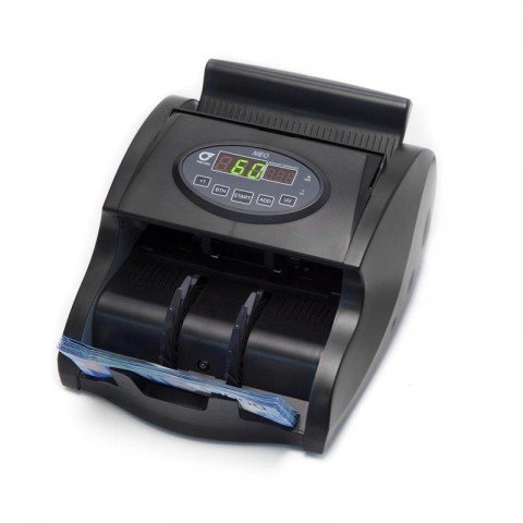 - Розпізнає фальшиві банкноти за оптичною щільністю (у тому числі на здвоєність; 3 рівні чутливості)